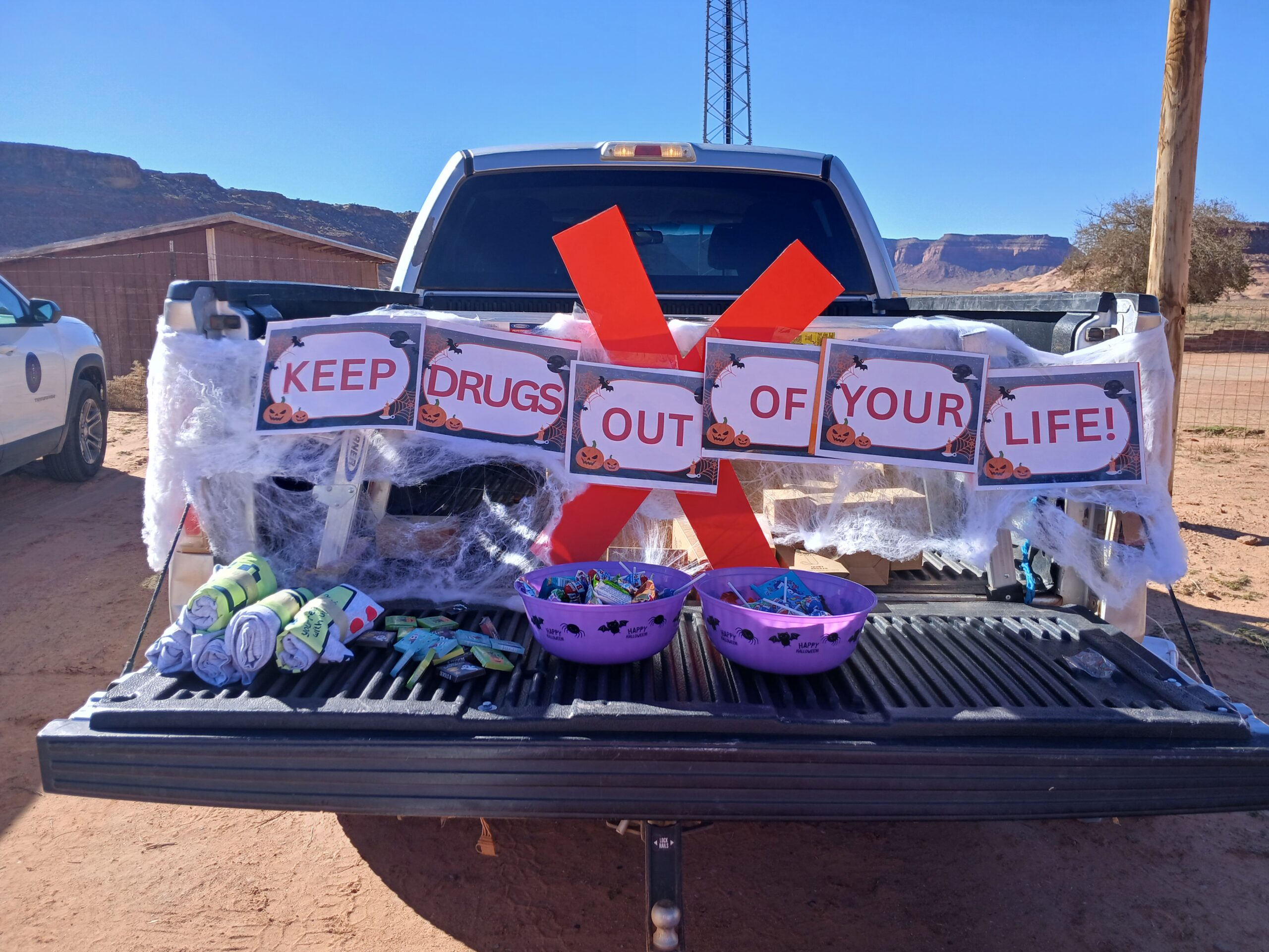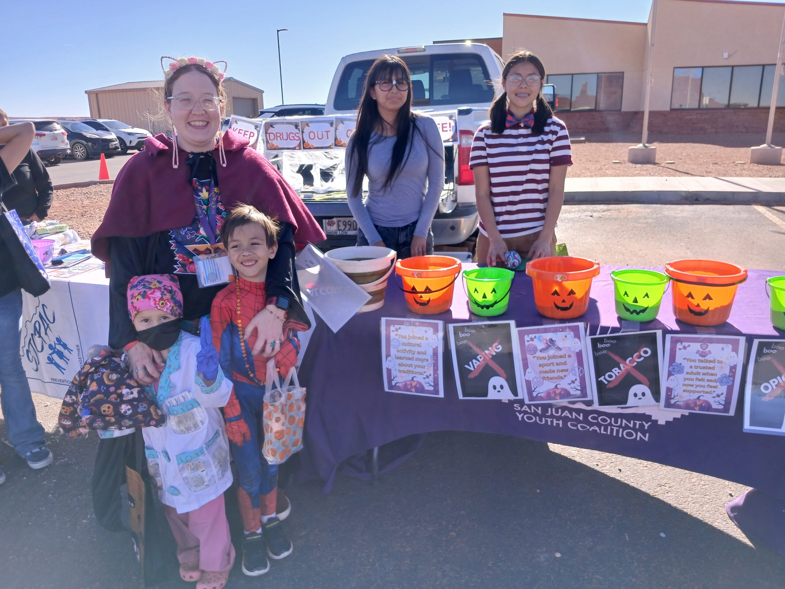 Tabled at the Oljato Head Start Trunk or Treat and the Monument Valley Health Clinic Trunk or Treat. Our Monument Valley Monster Slayer Youth Coalition proudly manned their own table, engaging families with a game focused on healthy versus risky behaviors. Prevention brochures and youth activity books were provided to support awareness, learning, and positive choices.